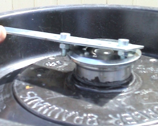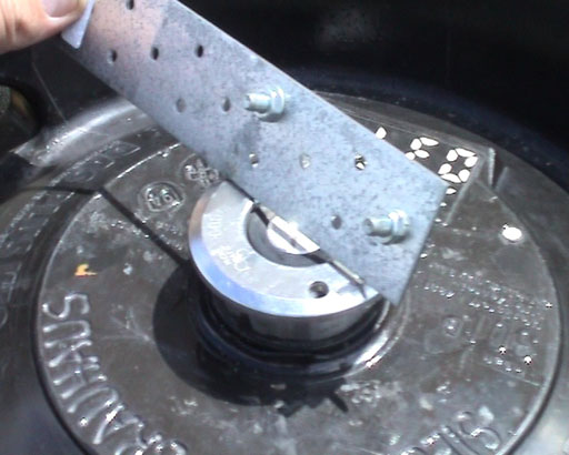 Der Abstand der Schrauben ist so zu wählen, dass der Fass-Schlüssel ungefähr in der Flucht mit mit dem Aufnahmeloch des Fittings ist (verringert durch den Hebelarm den Kraftaufwand beim Auf- und Zuschrauben).